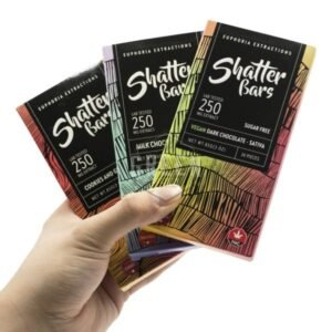 Everybody that has made their own edibles knows that extracting the most prized parts of cannabis and combining them with food can be a difficult and time consuming task. With many years of experimentation and fine tuning ingredients, extraction methods and strains, Euphoria Extractions has finally come up with what they call the perfect combination of flavor and effect. Every chocolate bar is made with wholesome ingredients and are free of imperfections – no more poorly portioned, unsafe cannabis edibles, just pure goodness. These chocolate bars are precisely infused with 250mg-500mg of THC using real shatter, allowing an interaction between a full spectrum of beneficial cannabinoids. Shatter all your expectations with Euphoria Extractions Shatter Bars!