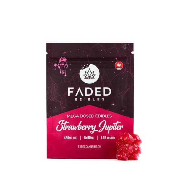 Blast off into space with Faded Cannabis Co.’s new lineup of mega dosed edibles! Their signature line of Astronaut gummies are a new, hard-hitting edition to their huge catalog. Unlike their 180mg or even 240mg gummies, these Astronauts are mega dosed, packing a whopping 480mg of THC per package! Faded Cannabis Co. Strawberry Jupiter Astronauts are delicious, and handmade with all-natural fruit flavors before being coated in a tangy, sour sugar for an extra little zing. Why settle for less, when you can reach for the stars?